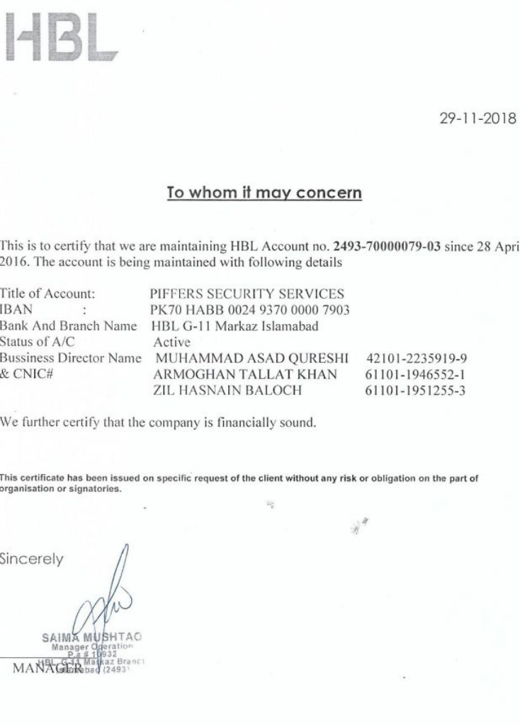 Company Bank Account Maintenance Certificate