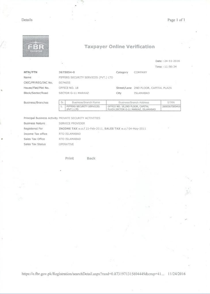 Head Office: Office # 17, 2nd Floor Capital Plaza G-11 Markaz Islamabad Pakistan