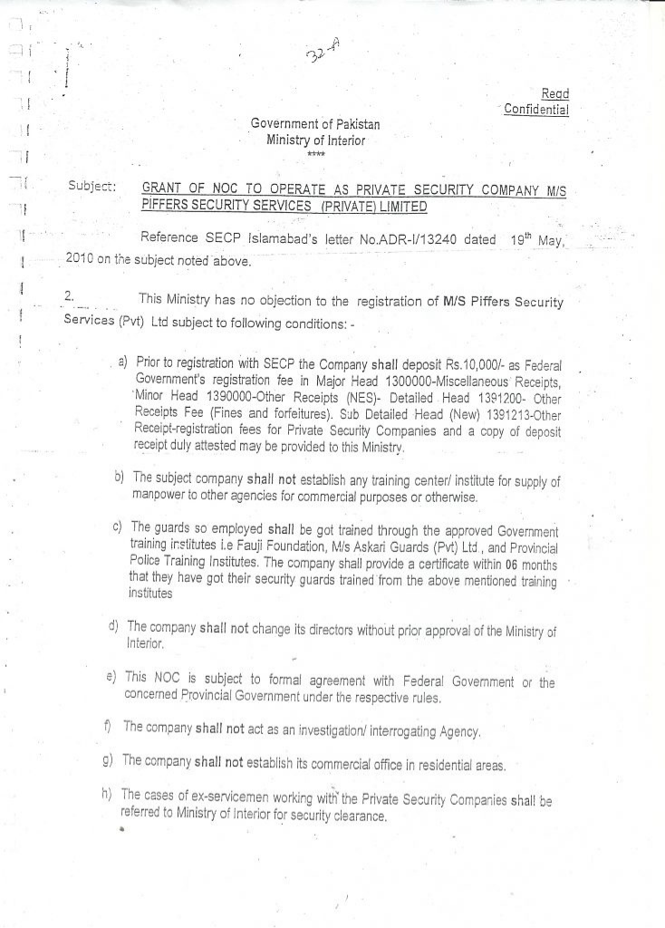NOC from Ministry of Interior