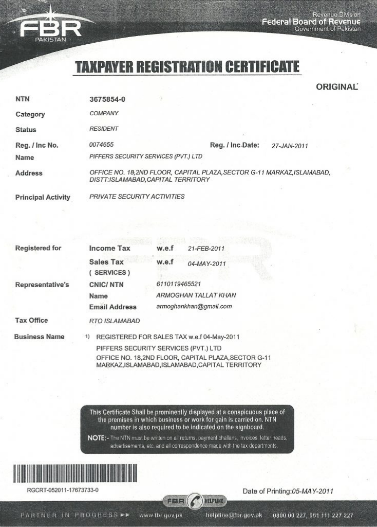 Registration Certificate