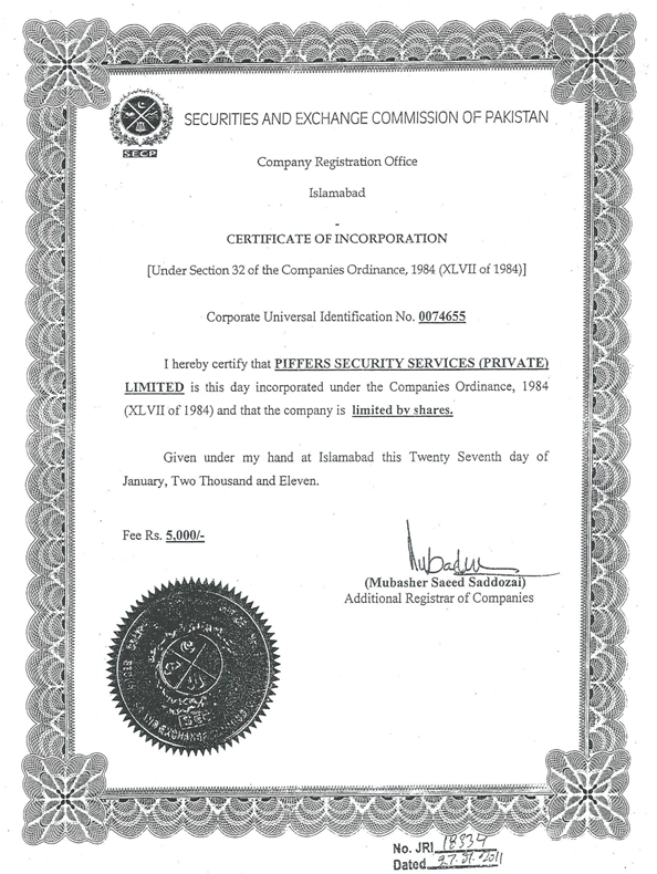 SECP INCORPORATION CERTIFICATE