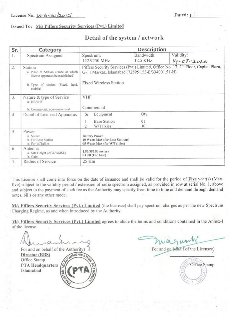 Wireless Operating License from PTA